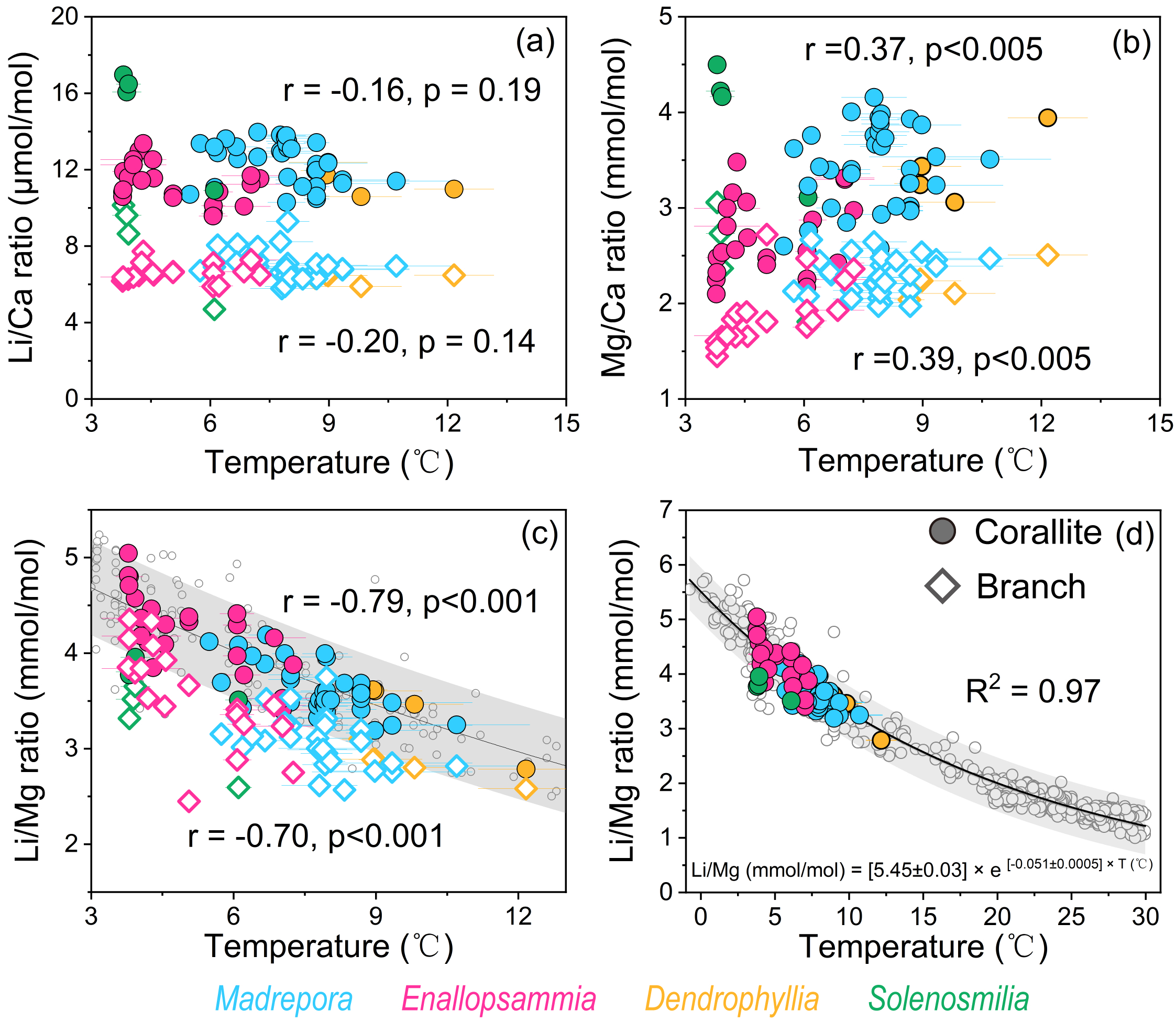 Reference: Liu, Q., Stewart, J.A., Robinson, L.F., Chen, S.*, Wang, M., Chen, T., Li, T.*, 2026. Colonial cold-water coral Li/Mg palaeothermometry: Influence of growth rate and skeletal heterogeneity. Earth Planet. Sci. Lett. 674, 119743. https://doi.org/10.1016/j.epsl.2025.119743.
