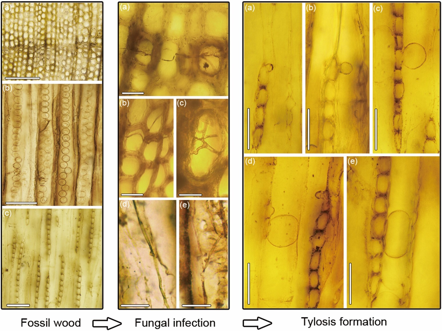 Beyond being the first documented fungal fossil record from the Jehol Biota, this discovery also represents the earliest Cretaceous evidence of fungal fossils co-occurring with tyloses, bridging the gap in relevant records between the Jurassic and Cenozoic. Furthermore, this study demonstrates that fungi played a key role in Cretaceous terrestrial ecosystems, furnishes robust evidence of physiological defense responses by Cretaceous wood to parasitic fungi, and deepens our understanding of plant-fungal symbioses in Early Cretaceous terrestrial ecosystems.
