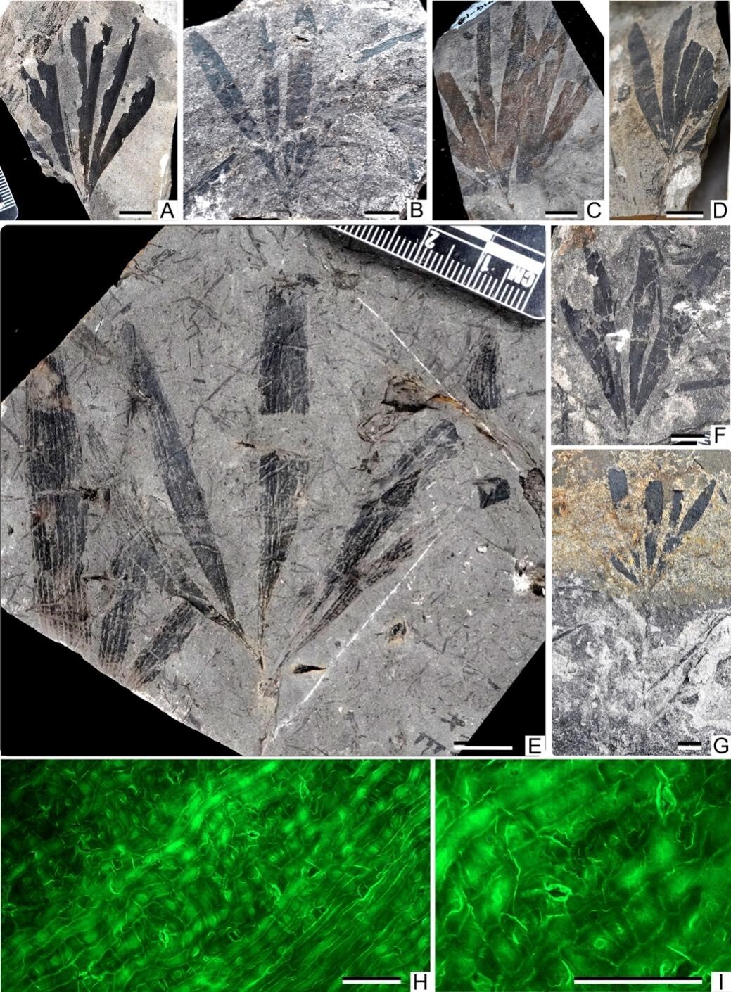Fig.2 Representative leaf fossil specimens of Ginkgoites longifolius with cuticular structure.