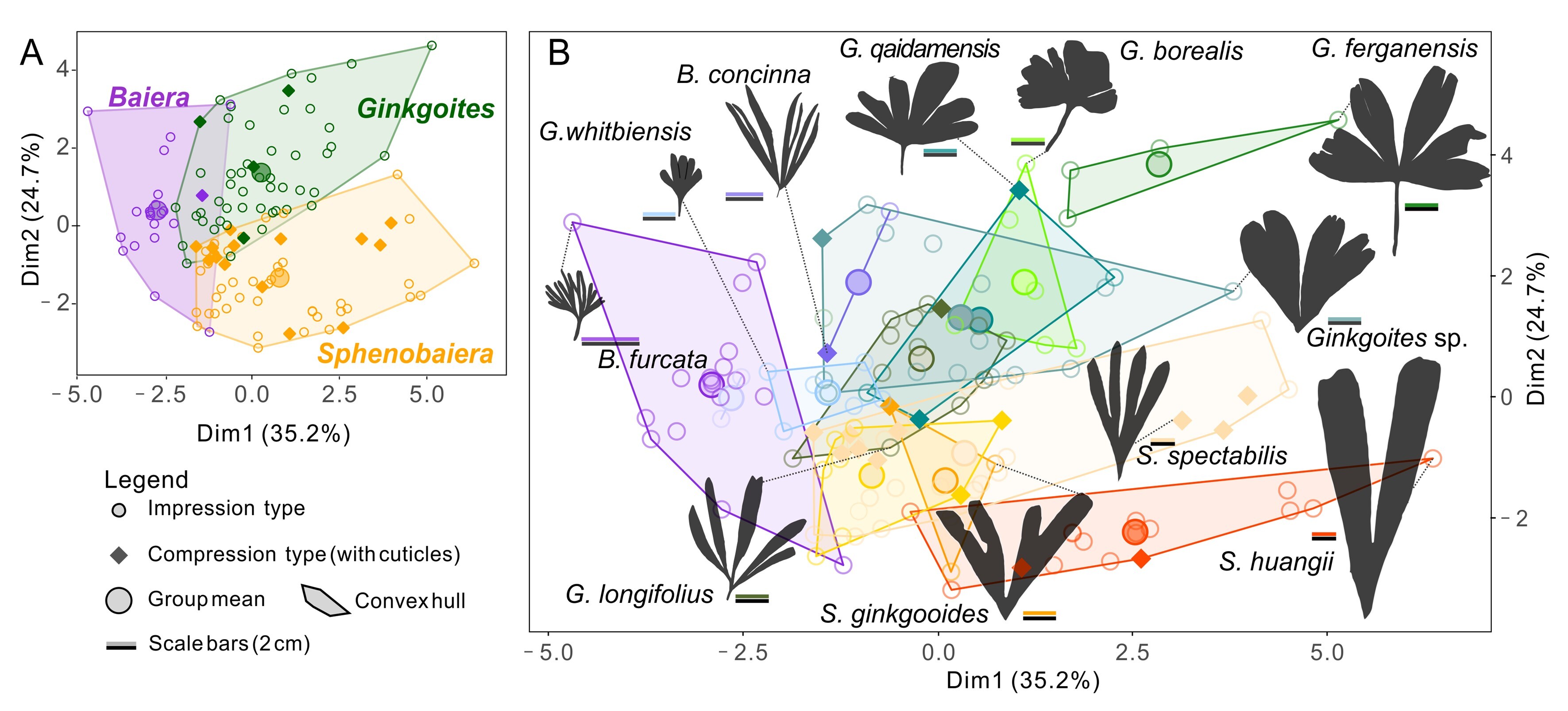 The research team innovatively adopted the Factor Analysis of Mixed Data (FAMD) method, which effectively integrated macromorphological and micromorphological data, and fully confirmed the complementary value and synergistic effect of macro- and micro-characteristics in the taxonomic classification of fossil ginkgoes. Furthermore, it was found that some species, including Ginkgoites qaidamensis and Ginkgoites longifolius, maintained stable morphological traits despite spanning the Early–Middle Jurassic strata. This finding provides critical fossil evidence and theoretical support for deepening our understanding of the evolutionary resilience of ginkgoales, their adaptive strategies in the face of Mesozoic environmental fluctuations, and the accurate reconstruction of the palaeoclimatic and palaeoecological patterns of the Early–Middle Jurassic in the Qaidam Basin and even the northeastern Qinghai-Tibet Plateau.