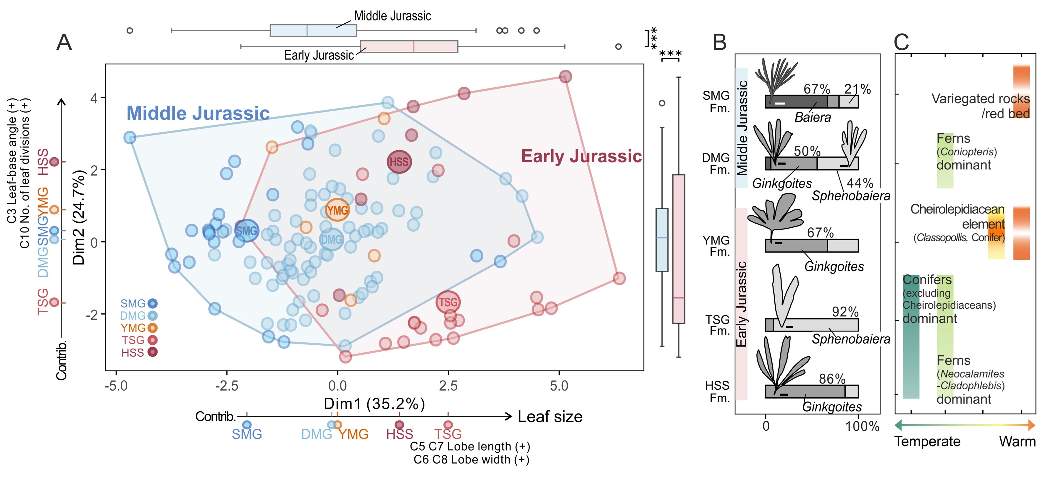 The study demonstrates that, despite the Qaidam Basin undergoing significant climatic changes over a temporal span of approximately 20 million years during the Early–Middle Jurassic, representative ginkgoalean still exhibited relative stability in leaf morphology and anatomical structures. This indicates that ginkgoales possessed the dual characteristics of morphological variability and ecological adaptability throughout their long-term evolutionary process. These findings deepen our understanding of the evolutionary history and adaptive capacity of ginkgoales, and provide a new perspective for elucidating the environmental adaptability of plants during this geological period.