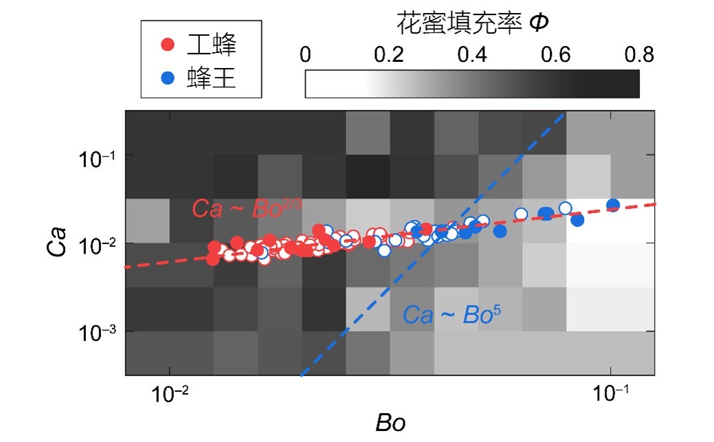 Based on high-speed microimaging, the research team discovered that when the glossa retracts, adjacent hairs form curved air-liquid interfaces, providing an additional capillary pressure gradient that enhances the entrainment of viscous nectar. This additional capillary pressure balances hydrostatic pressure. When hair spacing widens or glossa length increases, the liquid-carrying capacity of the glossa decreases. Besides the surface tension of the liquid, viscosity also plays a role in nectar capture. Due to growth constraints of the glossa structure, under natural conditions when bumblebee body size increases, their mouthparts cannot meet the optimal scaling relationship, causing gravity to dominate and thereby reducing the nectar fill rate.