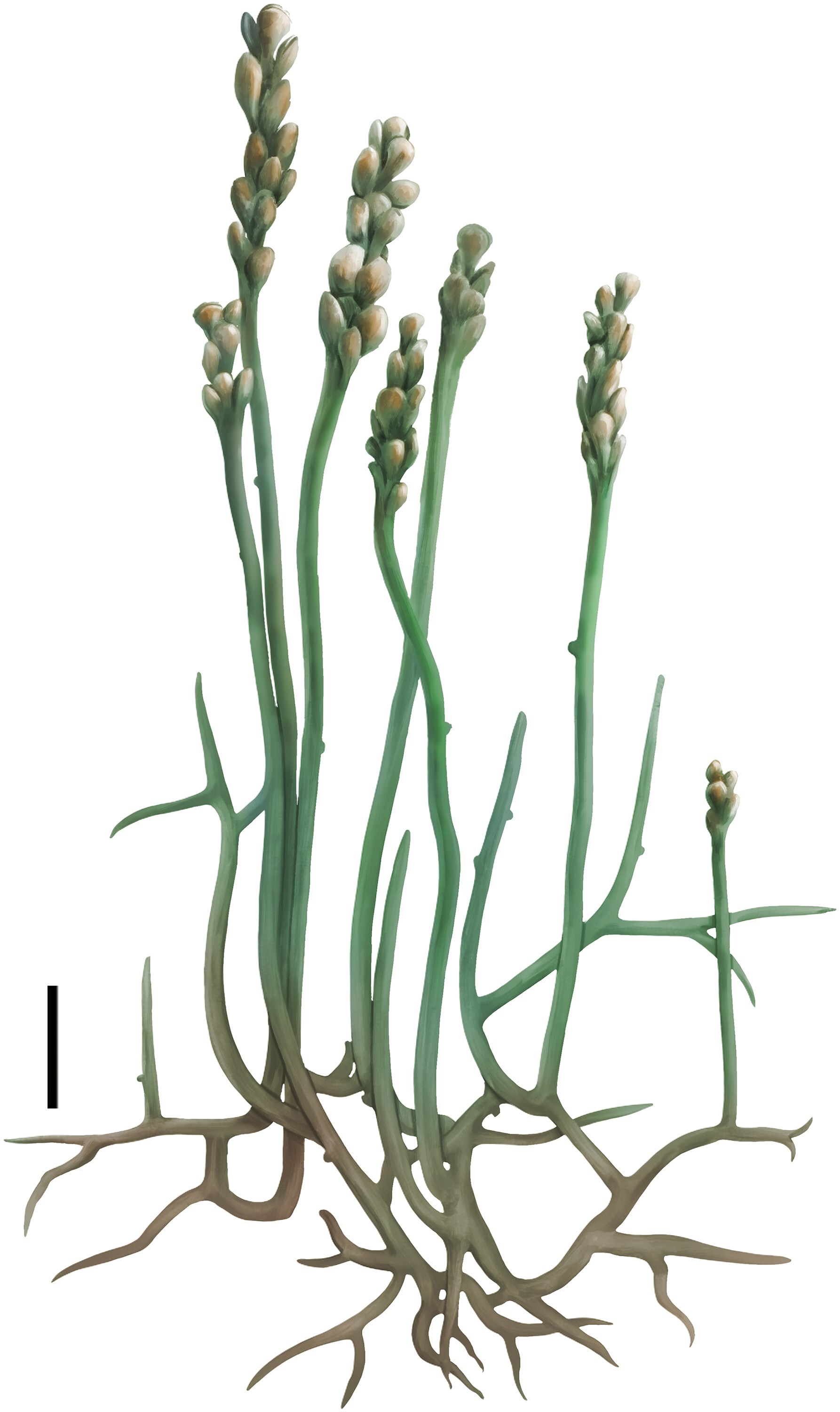 Fig.1 Reconstruction ofZosterophyllum mangkeluensesp. nov. Scale bars: 10 mm.