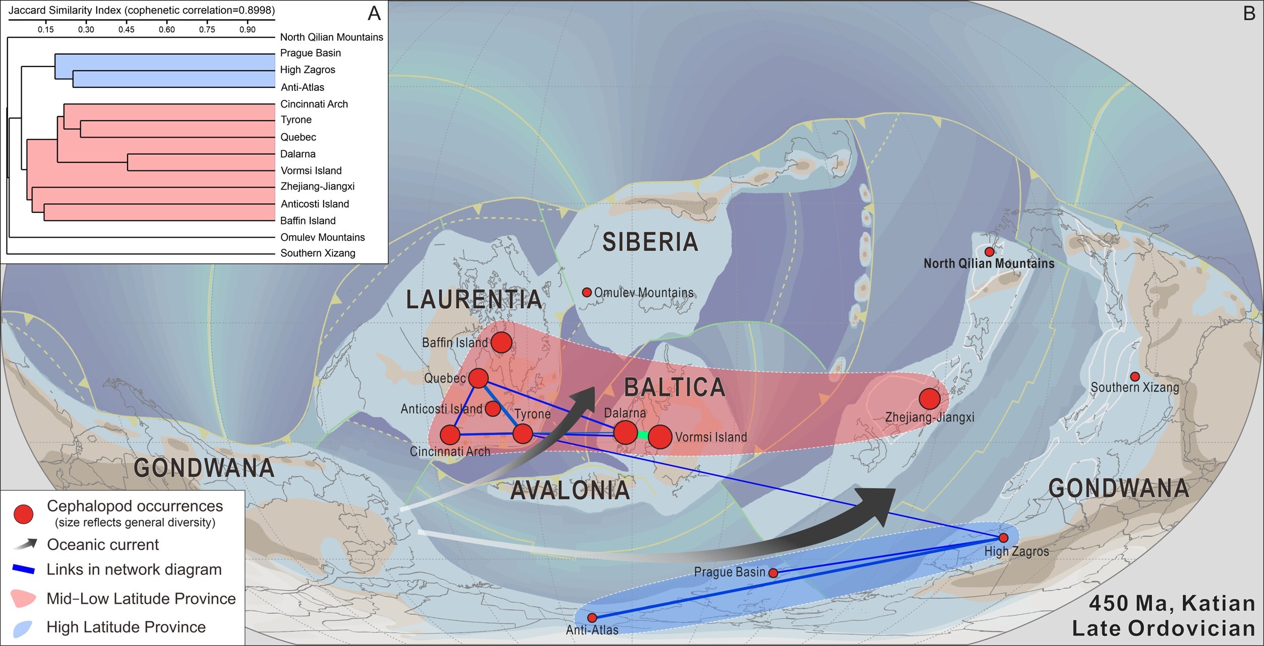 As the youngest ocean within the Tethyan Orogen, the opening time of the Neo-Tethys Ocean has remained a subject of debatewith different opinions such as prior to Middle Permian, Early Triassic, or Late Triassic. Resolving this issue is of great significance for understanding the geodynamic evolution of the Tethyan Orogen. Concurrently, as the remnants of the Neo-Tethys Ocean, the Yarlung Tsangpo Suture Zone (YTSZ) exhibits a complex structural background. In the east of Saga, it is characterized by a single ophiolite zone, but splits into northern and southern subzones west of Sage, with the Zhongba-Zhada microcontinent sandwiching between them. The fundamental question of whether both subzones represent a single suture or distinct sutures representing different oceans has remained a considerable debate.Recent researchers have increasingly focused on abundant exotic limestone blocks preserved in the mélange of the YTSZ. Much attention has been paid on the geochemistry and paleomagnetism of the associated basalt. However, the study on the biostratigraphy and paleobiogeography of these exotic limestone blocks remains scarce, with limited studies in the Gyanyima area, Purang County. With the Second Tibetan Plateau Scientific Expedition and other research funding, a research team lead by Prof. Yichun Zhang conducted fieldworks in 2022 and 2024. The works in the field discovered numerous exotic limestone blocks within the mélanges on both sides of the Zhongba-Zhada microcontinent. The exotic limestone blocks in the southern subzone suffer slight metamorphism, preserving diverse fusuline and coral fossils, but those in the northern subzone were strongly metamorphosed, leaving limited Permian foraminifers.The research team has recently conducted a systematic study on fusulines from the exotic limestone blocks in the Yarlung Tsangpo Suture Zone, focusing on fusuline fossils in the limestone blocks of the southern subzone. The Gyanyima section in Purang County contains a fusuline fauna dominated by Neoschwagerina, Kahlerina, and Yangchienia, with some species of Verbeekina, Chusenella, Colania, and Codonofusiella, indicating a Wordian-Capitanian age. In addition, the Zhalairi area in the south of Zhongba County is characterized by an assemblage rich in Codonofusiella and Lantschichites, accompanied by minor Neoschwagerina, Yangchienia, and Chenella, suggesting a late Capitanian age.Paleobiogeographic analysis reveals that these fusuline assemblages exhibit high abundance but low diversity, conspicuously lacking advanced genera (e.g., Sumatrina, Yabeina, Lepidoliolina). The paleobiogeographic affinities of the faunas indicate that these exotic limestone blocks were formed in a position between the northern Lhasa Block and the southern Indian Plate during the Middle Permian. Additionally, the limestone blocks lack terrigenous clastic but associated with basalt, strongly suggesting an origin of the seamounts in the Neo-Tethys Ocean. It deserves note that the occurrence of warm-water fusuline-containing limestones was in the south of the Zhongba-Zhada microcontinent with typical cold-water faunas. This phenomena strongly supports that the southern subzone was not in situ but originated from the northern subzone. The southern and northern subzones of the YTSZ belong to a same ophiolite belt, both representing the remnants of the Neo-Tethys Ocean.In conclusion, this study confirms that the Neo-Tethys Ocean opened in the late Early Permian, and subsequently developed series of seamounts in the ocean basin by the Middle Permian. During the collision between India and Eurasia, the ophiolites obducted and transported the mélange and limestone blocks to form the southern subzone. Those limestone blocks within the northern subzone, however, suffered from strong metamorphism. This study provides significant evidence in understanding the early evolution of the Neo-Tethys Ocean and the tectonic affinity of the subzones of the YTSZ.This research was supported by the Second Tibetan Plateau Scientific Expedition and the National Science Foundation of China.Reference: Hong-fu Zhou, Yi-chun Zhang*, Mao Luo, Xin Li, Hua Zhang, Hai-peng Xu, Ruo-lan Liao, Qi Ju, Xiao-Hui Cui, Jun-jie Liu, Yao-feng Cai, Shu-zhong Shen, 2025. Dismembered Guadalupian (Middle Permian) seamounts within the Yarlung-Tsangpo Suture Zone: Implications for the opening time of the Neo-Tethys Ocean. Palaeogeography, Palaeoclimatology, Palaeoecology, 675:113063. https://doi.org/10.1016/j.palaeo.2025.113063.The exotic limestone in the ophiolite mélange of the Yarlung-Tsangpo Suture Zone. (A, Full view of the exotic limestone blocks in the Zhalairi area; B, The exotic limestone in the ZLR1 section; C, The exotic limestone in the ZLR3 section; D, The Bijiula section; E, The exotic limestone in the JYM2 section; F, The interlayered basalts in the JYM2 section.)The cartoon showing the formation of the seamounts within the Neo-Tethys Ocean and its obduction to the south of the Zhongba-Zhada microcontinent during the collision between the Tethys Himalaya Terrane and the Lhasa Block<!--!doctype-->