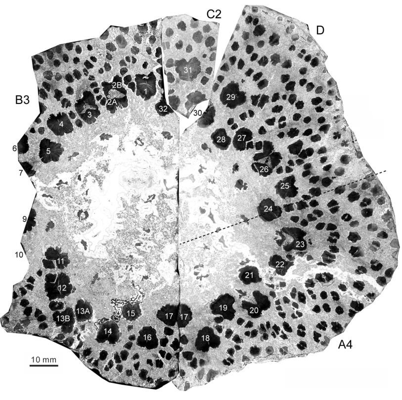 The evolution of trees and forests in the Middle to Late Devonian Period, 393–359 million years ago, profoundly transformed the terrestrial environment and atmosphere. The oldest fossil trees belong to the class Cladoxylopsida. In general, their water-conducting system was a ring of hundreds of ... |